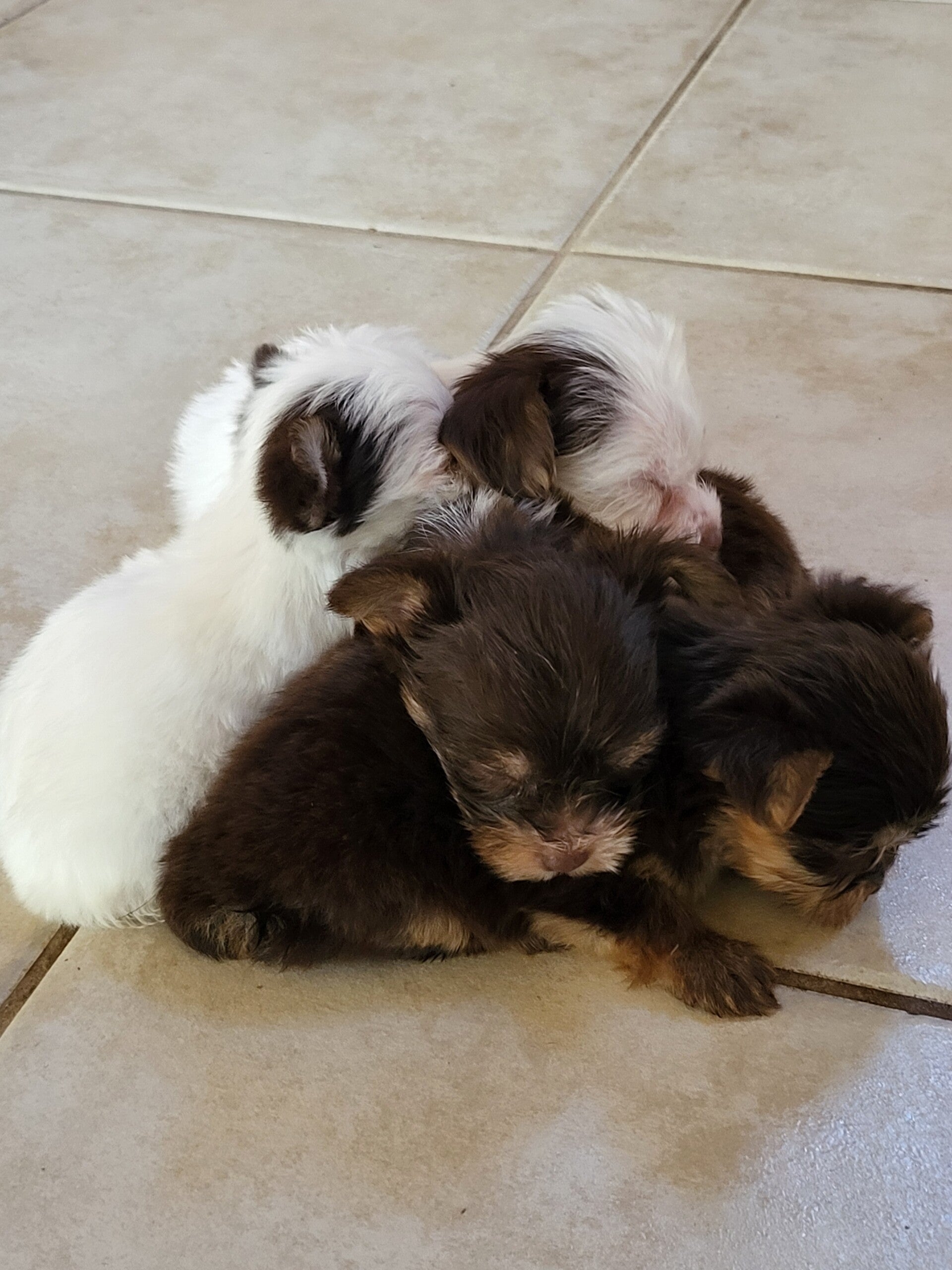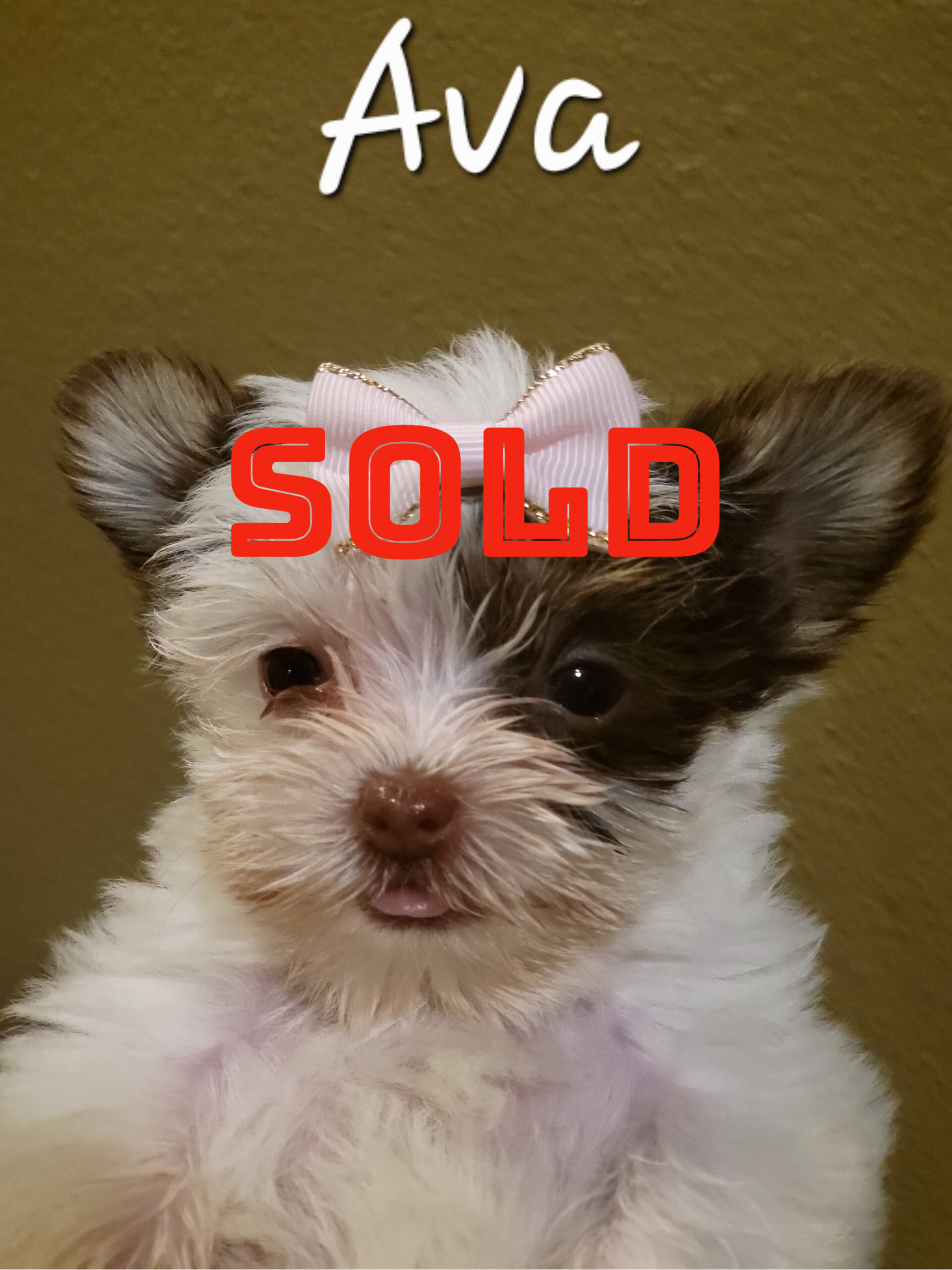 Small Girl. (Teacup size). White with brown patch on eye and ears.